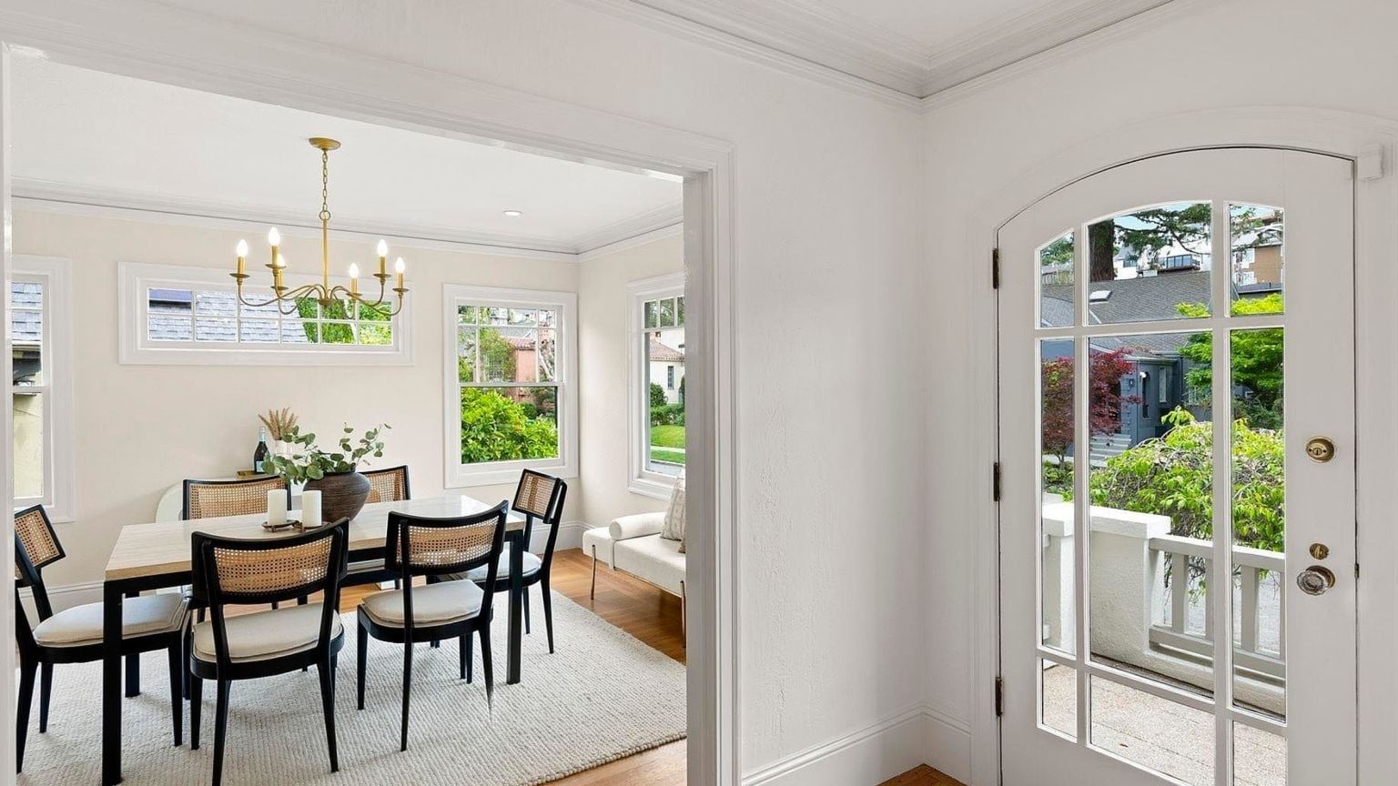 Step through the elegant arched doorway into this inviting 1920 Craftsman home, where original hardwood floors and artisan plate glass windows immediately showcase the thoughtful blend of classic charm and modern updates. The bright entry flows seamlessly into living spaces, while garden views through multiple windows hint at the rare outdoor sanctuary that awaits beyond.